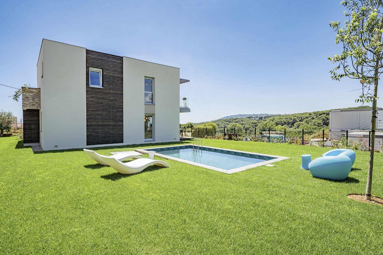 La résidence clôturée dispose de jardins paysagers et de nombreux arbres disséminés dans les jardins, notamment des oliviers, des pins, des cerisiers du Japon, des faux poivriers et des tilias qui remplissent la résidence de couleurs et de senteurs méditerranéennes, offrant ainsi l'endroit idéal pour se détendre. Ce domaine intimiste se compose de 8 logements du T2 au T4, nichées dans un écrin de verdure et pensées pour allier élégance architecturale et confort haut de gamme. Chaque logement dispose d'un espace extérieur avec de grandes baies vitrées qui prolongent les séjours. Une place de stationnement est comprise dans le loyer.