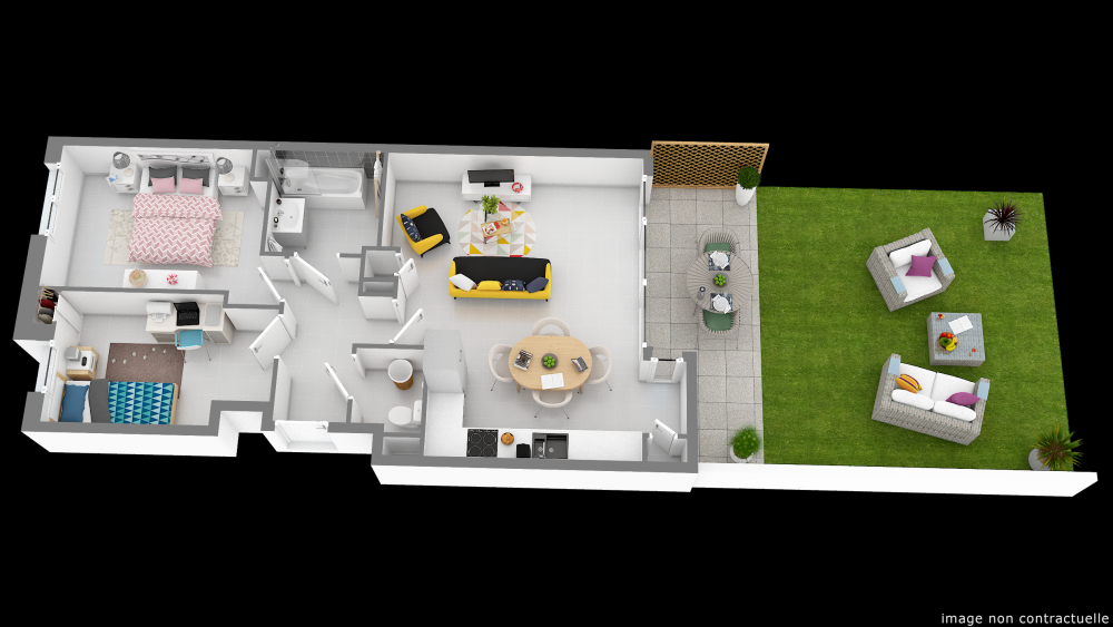 Située au sein de l'écoquartier Monges Croix du Sud, un écrin de verdure de 8 000 m2. Proche des commerces de proximité, centre commercial de Blagnac à quelques minutes de voiture.