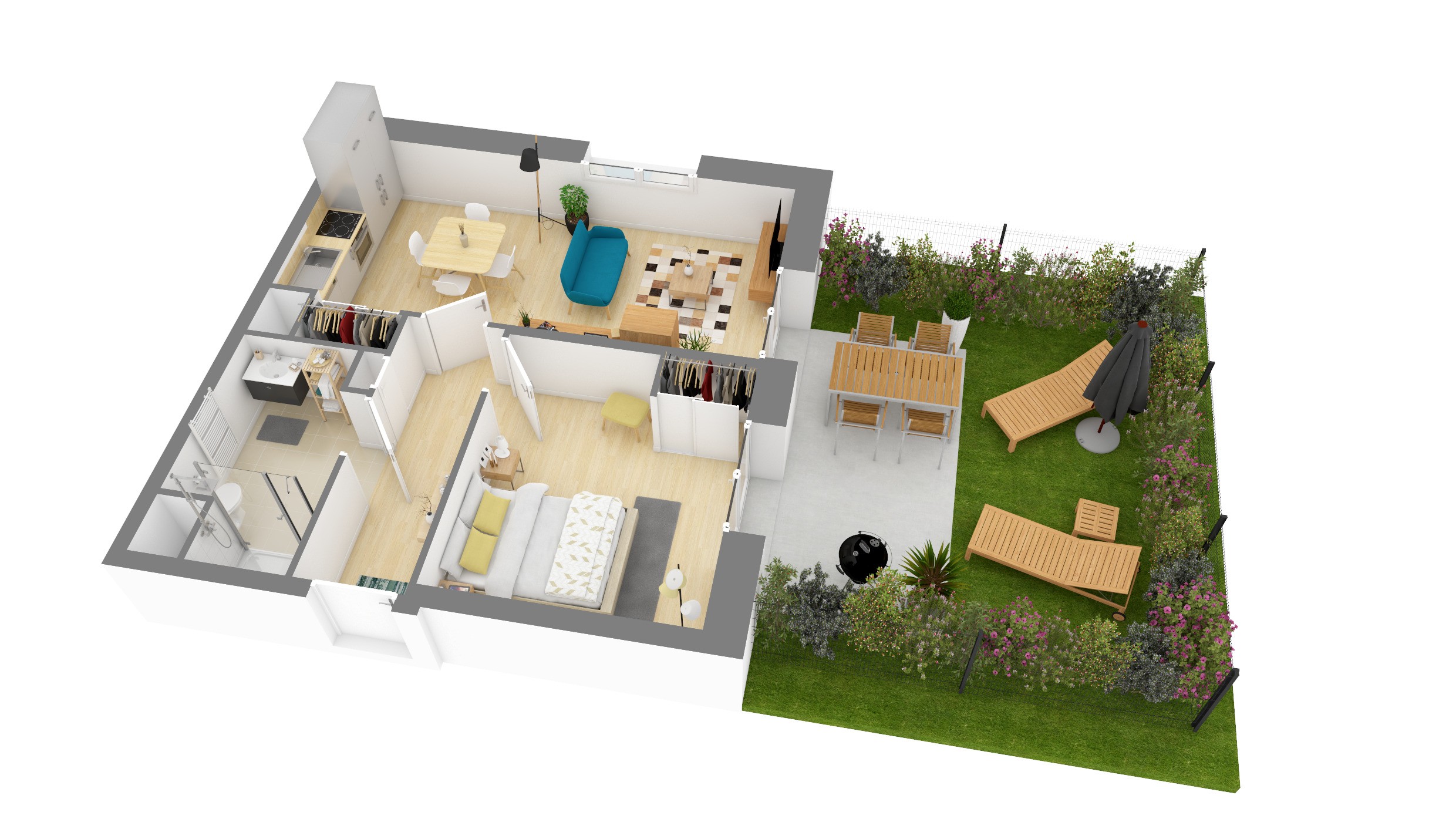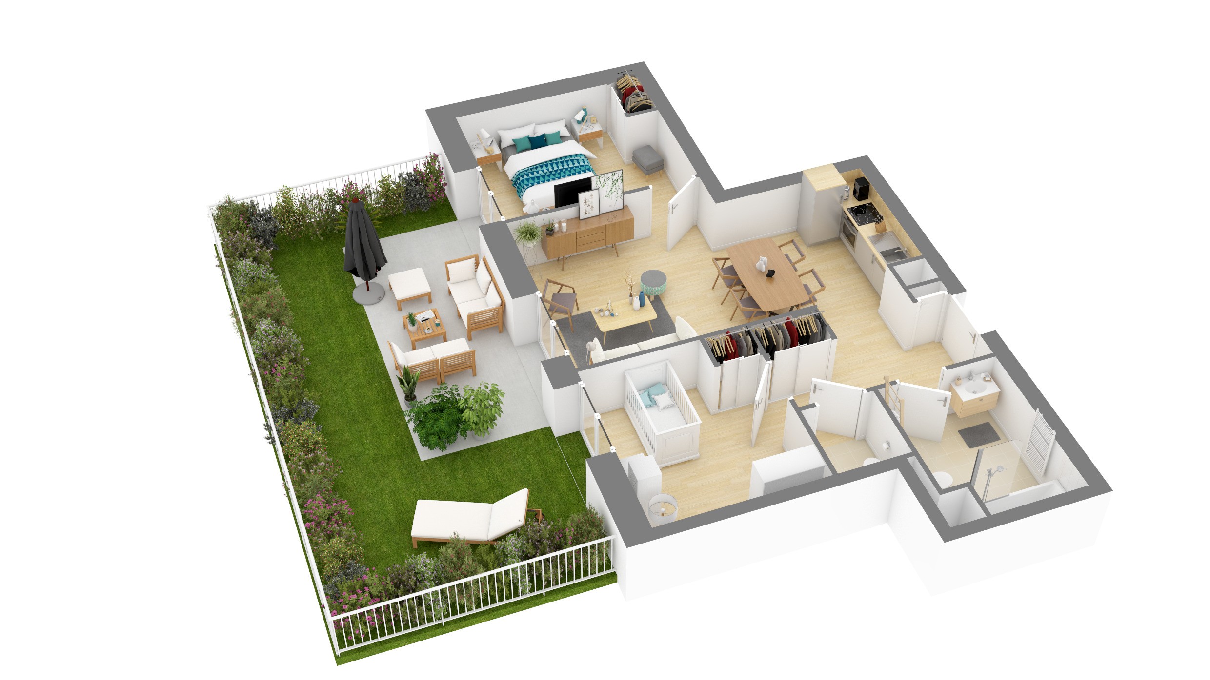 Profitez de cuisines aménagées (prêtes à accueillir vos idées culinaires !), de placards intégrés pour un espace toujours bien rangé, et de salles de bains équipées de parois de douche ou de baignoires, selon les logements.