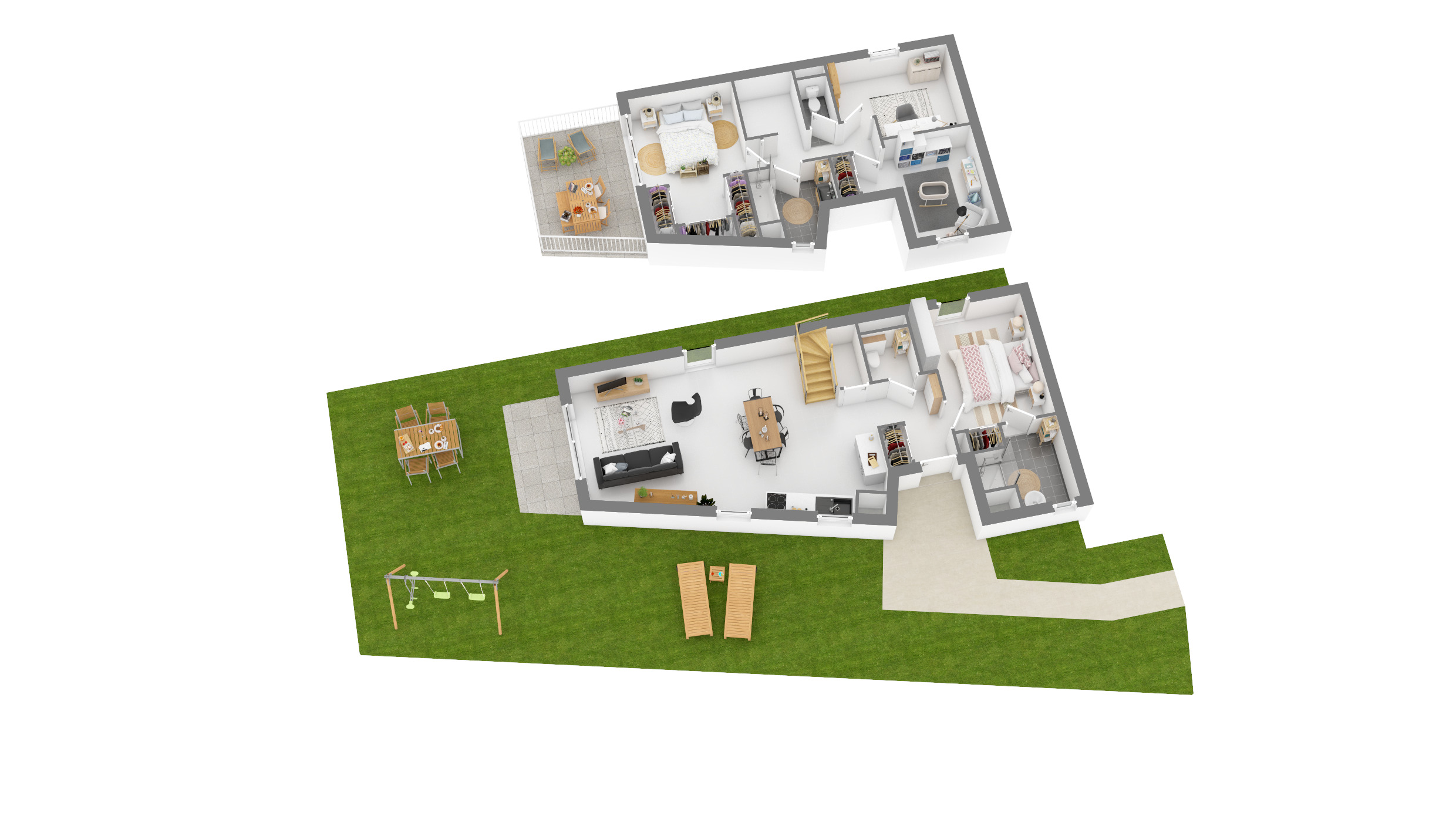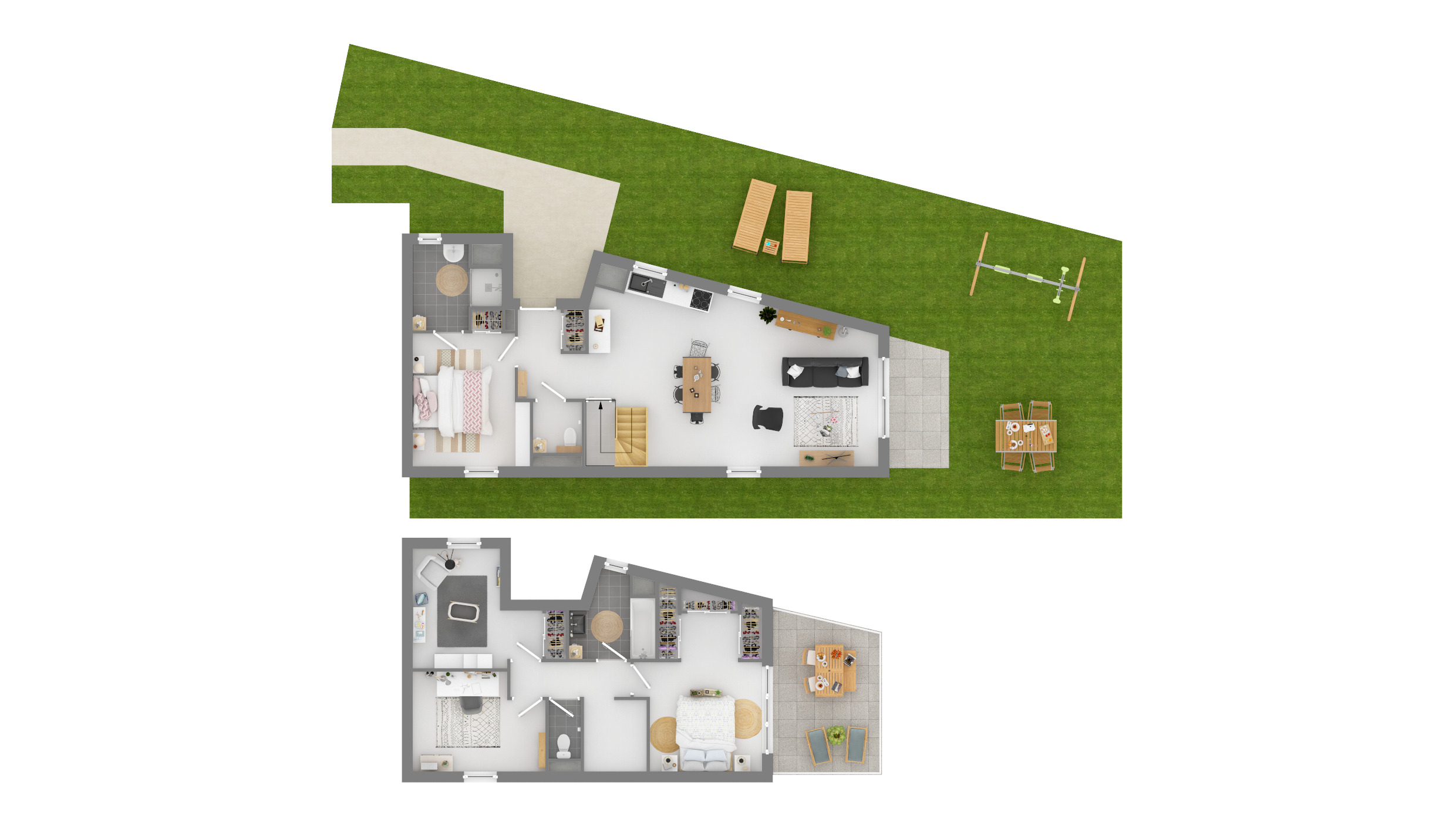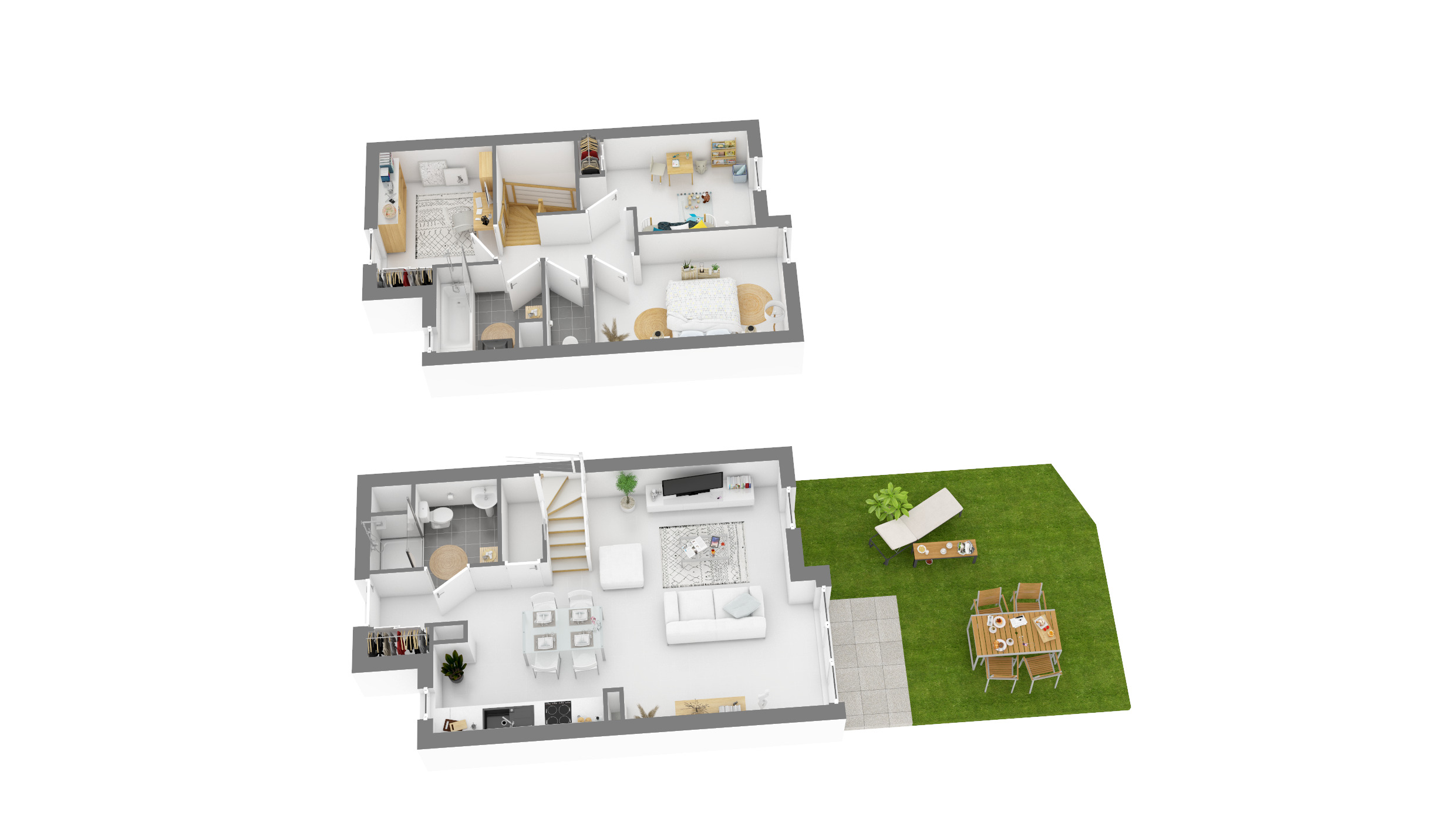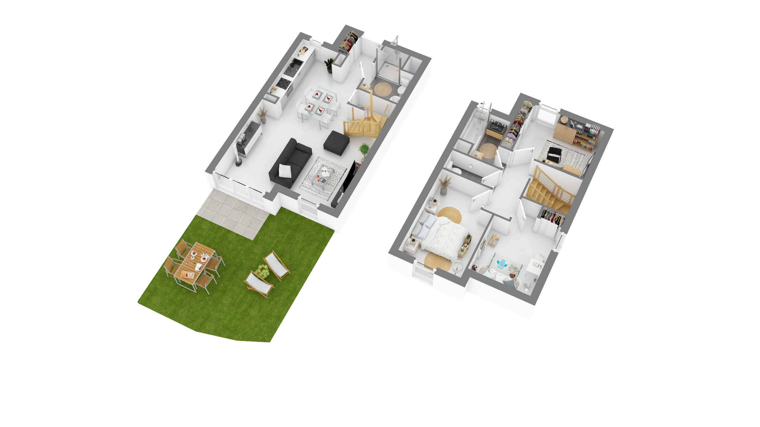 Sur un terrain de près de 6 000m², le Faubourg offre un cadre de vie convivial dans un environnement naturel préservé. Les maisons, de 3 à 5 Pièces et sur deux niveaux, qui composent cet écrin sont regroupées en petits hameaux exempts de toute circulation automobile. Cette implantation aérée favorise lesprit de petit village, où chaque résident peut profiter pleinement des espaces végétalisés extérieurs, loin de lagitation urbaine. La tranquillité retrouvée, laccès aux parkings privatifs seffectue par les cheminements piétons et paysagers. Toitures en tuile, façades enduites aux tonalités claires et parements de pierres confèrent à la résidence une esthétique en parfaite harmonie avec la nature environnante, enrichie dessences locales telles que lérable, le frêne et le lilas. Tous les logements sont pensés pour le confort et la sécurité des résidents. Les appartements de 4 à 5 pièces bénéficient toutes dun espace extérieur privatif , terrasse et jardin