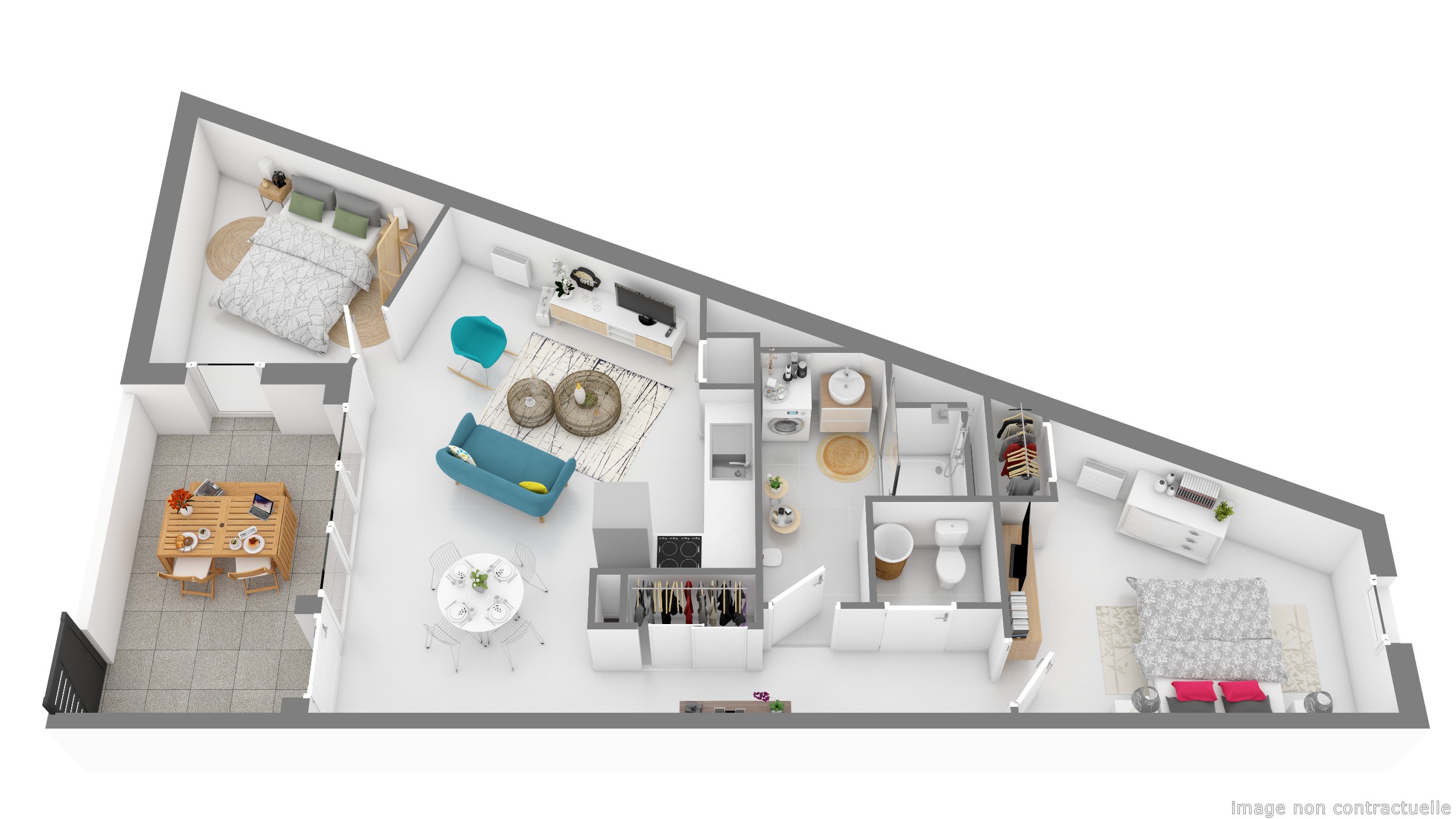 Située dans le quartier de La Valsière, sur la rive droite de Grabels, Bella Ronda vous séduira par son calme et son environnement arboré. Elle bénéficie dun emplacement privilégié à deux pas de toutes commodités : commerces de proximité, centre commercial, écoles, restaurants et axes routiers. A taille humaine, la résidence est composée de 50 logements seulement, répartis dans deux petits bâtiments. Son architecture élégante est inspirée de lAndalousie où se mêlent enduit blanc et brique ocre sur fond de façades à moucharabiehs. Les appartements de 2 ou 3 pièces sont prolongés par de belles terrasses. Un jardin aux essences méditerranéennes offre un espace vert pour respirer et se ressourcer. Enfin, Bella Ronda propose des stationnements privatifs en sous-sol. Une résidence où il fait bon vivre, en harmonie avec la nature.