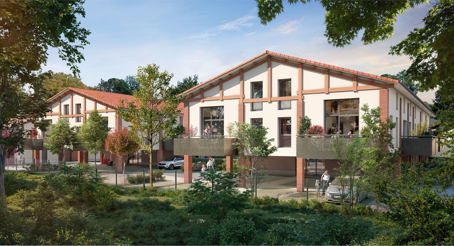 La résidence « Le Hameau des Palombes » se compose de plusieurs bâtiments de faible hauteur, entourés de beaux jardins arborés. Darchitecture sobre et contemporaine, elle présente une alternance de façades en enduit clair ou couleur brique rouge, des parements en brique toulousaine et des toitures en tuiles. Ces petits collectifs, aux allures de maisons et inspirés de lidentité locale, épousent parfaitement lesprit pavillonnaire de LUnion. Tous les logements présentent de beaux volumes et bénéficient de prestations de qualité.