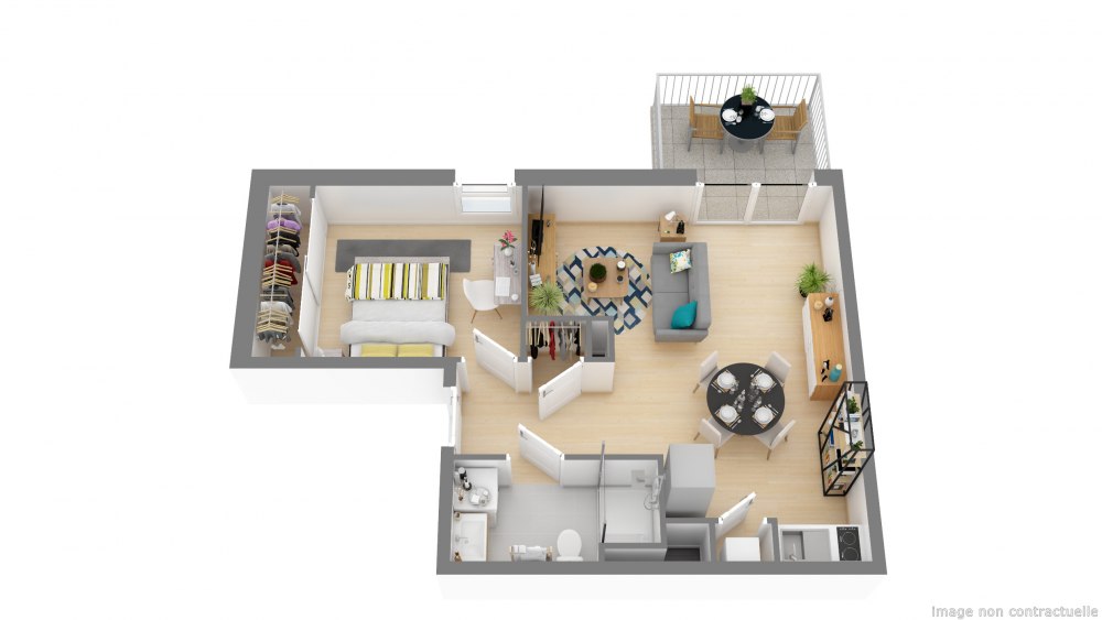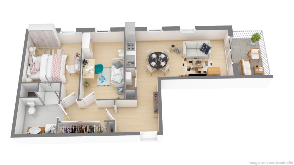 La réalisation propose une conception d’appartements, du 2 au 4 pièces, à la fois moderne et fonctionnelle avec de spacieux espaces à vivre. L’orientation sud-ouest de la résidence vous fait bénéficier de la lumière naturelle et d’un apport de chaleur jusque dans votre appartement. Vous aurez aussi plaisir à prolonger la vie en extérieur grâce aux grandes loggias, aux généreux balcons et aux vastes terrasses. Arbres de hautes tiges, massifs graminées et gazon en cœur d’îlot sont implantés pour créer des sas de respiration verte. Le long de la noue paysagère, la végétation grimpante a été conçue de manière à masquer les emplacements extérieurs de voitures tandis que massifs arbustifs et arbres permettent la séparation des stationnements. Les locaux vélos sécurisés, sont quant à eux, couverts en rez-de-chaussée de résidence.