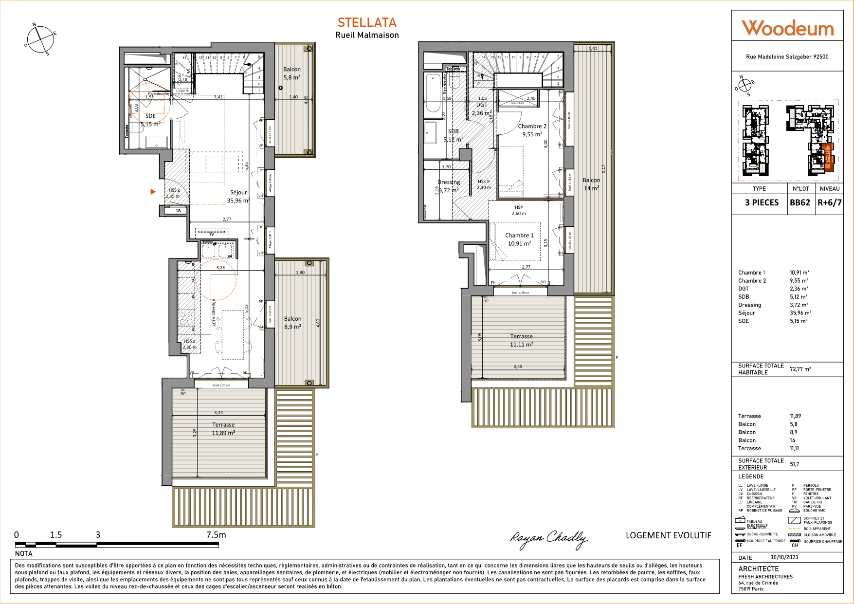 La résidence se distingue par son architecture contemporaine et ses choix responsables : structure en bois massif, balcons semi-portants en acier recyclé fabriqués avec une électricité 100 % verte, et une performance énergétique exemplaire. Compatible avec la Réglementation Environnementale RE2020 – seuil 2028, Stellata vise le label BBCA niveau Excellence. Le chauffage collectif est assuré par le réseau urbain alimenté par la géothermie, garantissant confort et économies d’énergie.