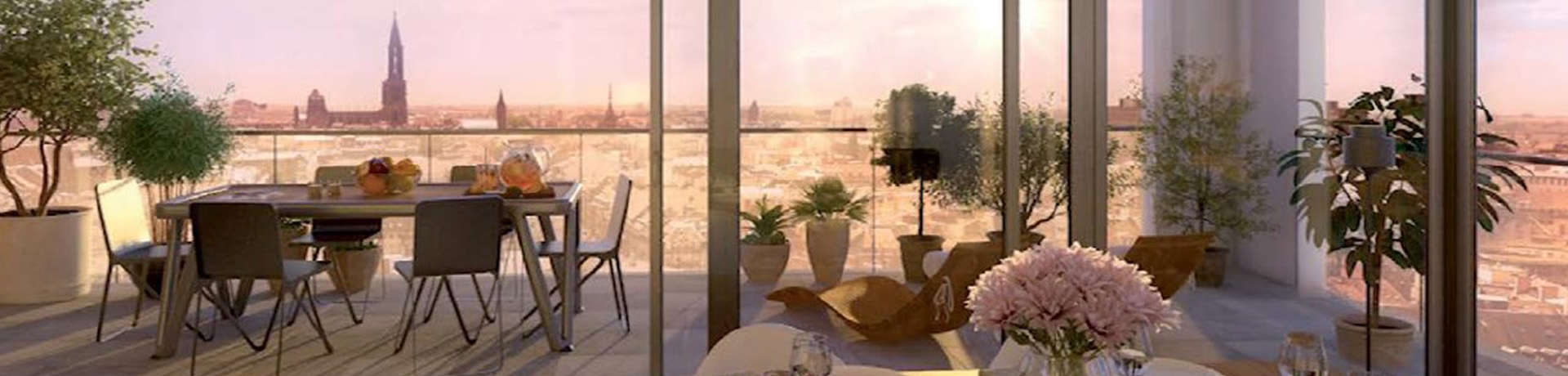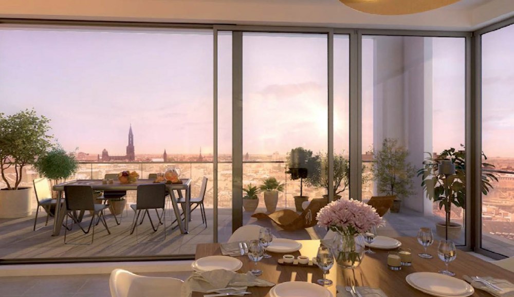 La vue panoramique pour les appartements situés en hauteur, vous permettra de contempler le coeur historique de Strasbourg, les Vosges et la Forêt-Noire.