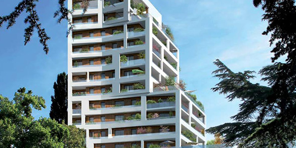 Cette résidence dispose d'une architecture moderne et élancée avec ses cascades de terrasses végétalisées.