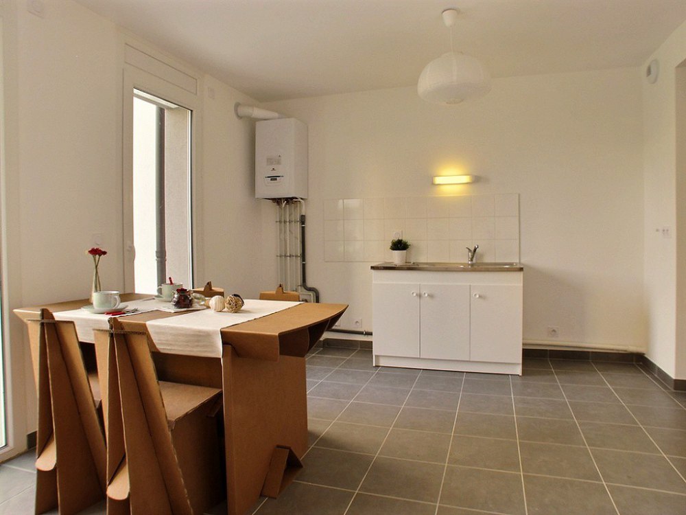 Les logements sont composés d'un hall d'entrée avec placards, d'un beau séjour-cuisine (non aménagée) carrelé qui donne sur un spacieux balcon avec des dalles au sol.